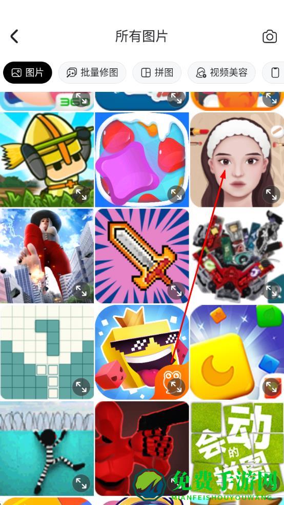 2、跳转至所有图片页面,浏览手机相册,找到并点击需要进行人像美容的图片,将其导入编辑界面。
