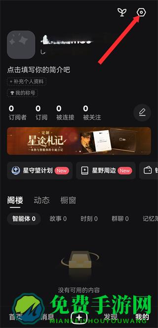 1、在星野的首页,点击底部我的按钮,进入个人的页面。