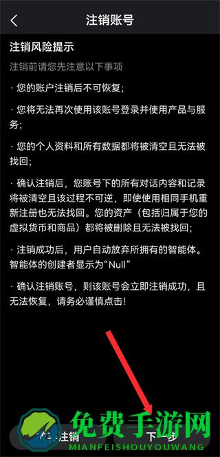 4、在注销账号的页面,点击下一步,完成账号的注销操作。