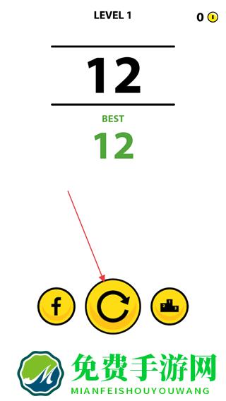 4、游戏结束后,查看屏幕显示的分数,点击下方黄色重置按钮,可重新开始游戏挑战更高分数。