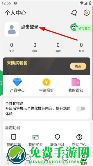 3、在个人中心页面,点击点击登录,进入登录页面。