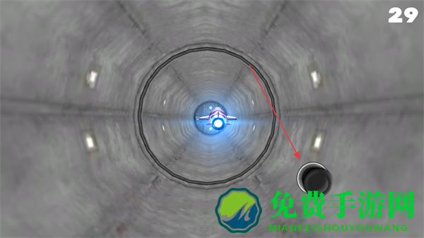 1、进入游戏,操控飞船在隧道中前进,注意避开隧道壁,屏幕上方数字显示为进度或分数。