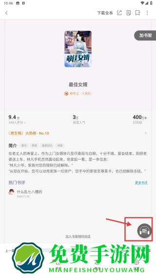 4、在小说详情页,点击右下角听按钮,开启小说的有声阅读模式。