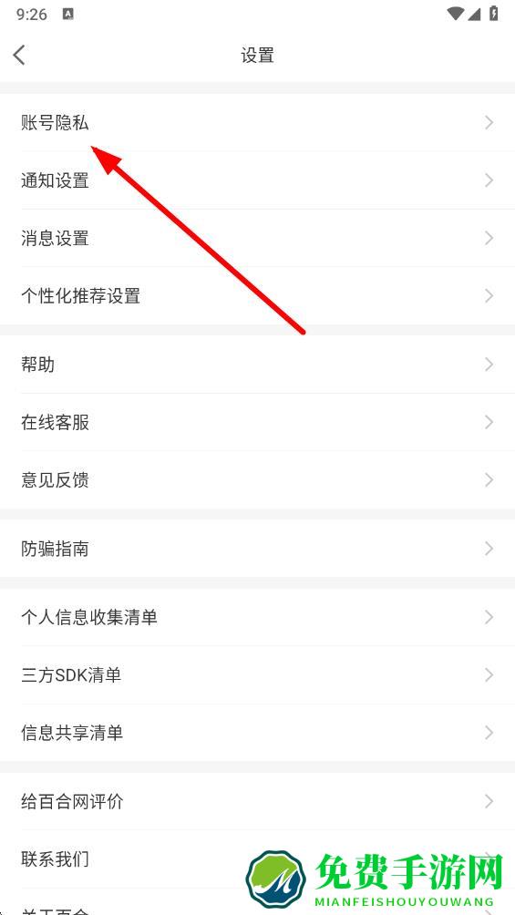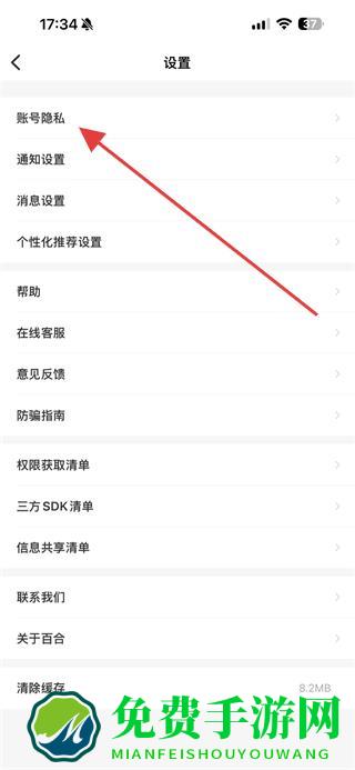 3、在设置界面中,点击账号隐私选项进入相关页面。