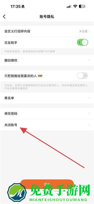 4、在账号隐私页面里,找到关闭账号选项,按照后续提示操作即可注销账号。