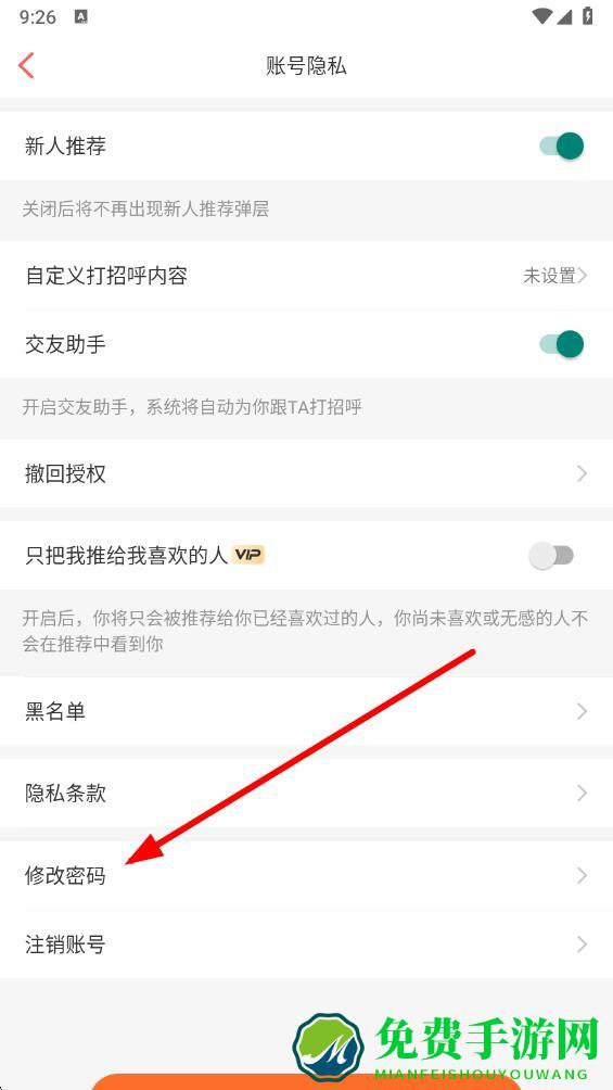 4、进入账号隐私页面,点击修改密码的选项。