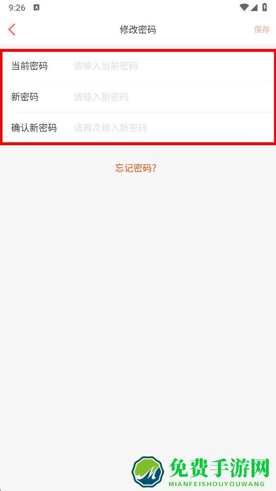 5、在修改密码页面输入当前密码、新密码和确认新密码后,点击保存即可修改成功。