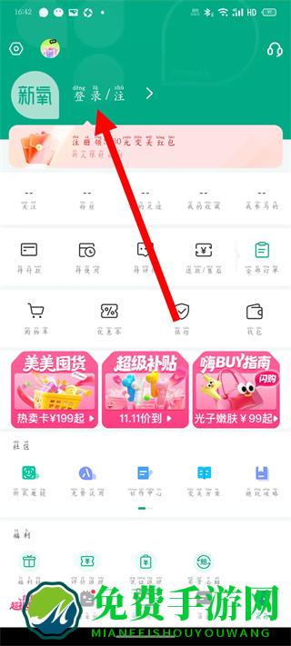 2、进入我的页面后,点击登录注册选项,进入登录页面。