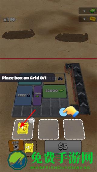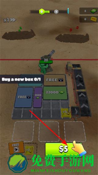 1、点击绿色的$5按钮购买新箱子,完成Buy a new box0/1任务,这是游戏初期拓展资源的关键操作。