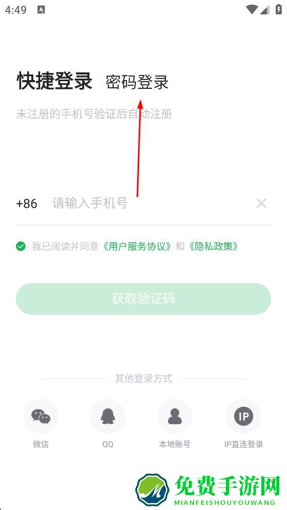 1、打开登录软件,在登录页面点击“密码登录”选项。