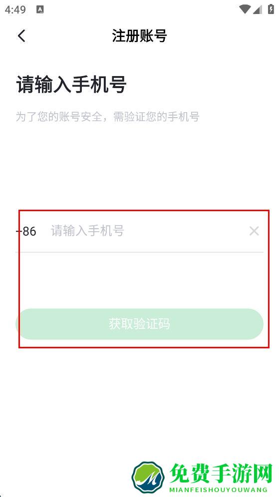 3、进入注册账号页面,在“请输入手机号”栏输入手机号,点击“获取验证码”,输入收到的验证码。