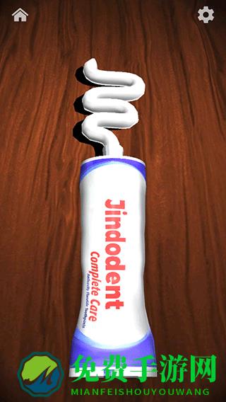 3、例如牙膏,页面中就会出现一个拧开的牙膏,这时我们从顶部向上挤。牙膏会越挤越多,挤完后会重新开始很减压;