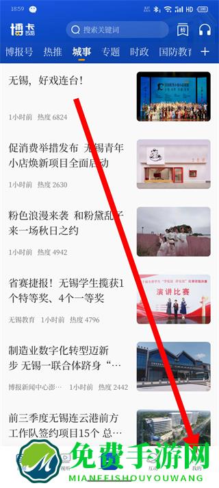 1、打开无锡博报,点击页面底部的我的,进入个人页面。