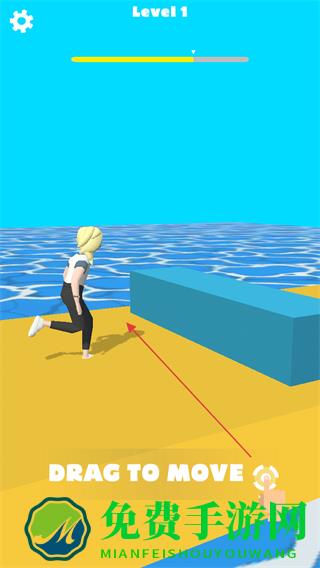 1、拖动屏幕控制角色移动,在Level1的跑道上躲避障碍前行。