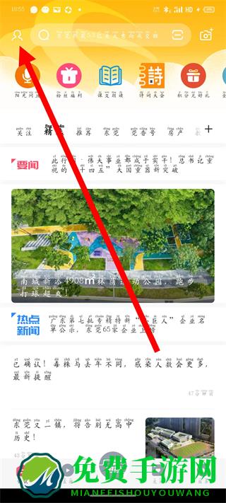1、打开知东莞,点击页面左上角的头像图标,进入个人中心界面。