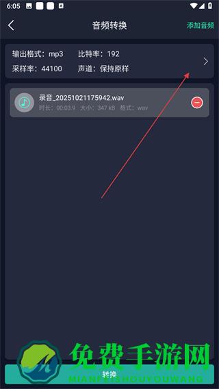 3、进入音频转换页面后,点击输出格式设置区域,进入参数设置页面。
