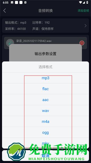 5、在选择格式列表中选择你需要的音频格式后,点击确定按钮。