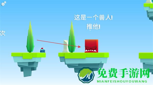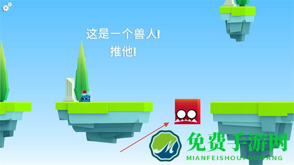 2、遇到兽人,轻按推动将其推下平台。