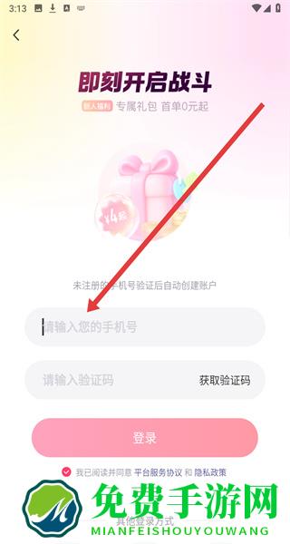 3、在进入到登录页面中时,可以点击输入框填写手机号以便获取验证码进行登录。