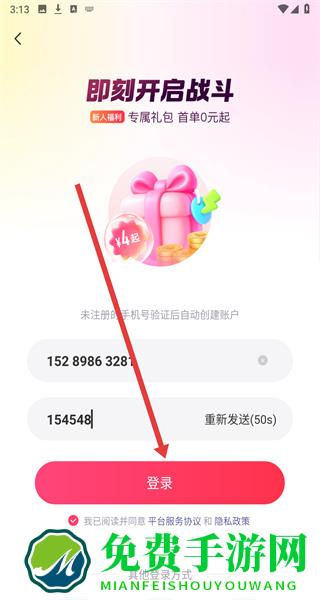 4、在填写好手机号和验证码后,即可点击下方登录按钮,完成登录。