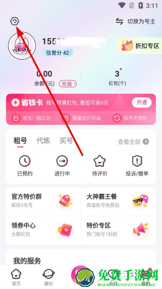 1、打开租号玩APP,点击底部导航栏中的我的进入个人中心页面。