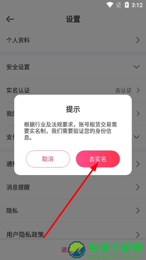 4、系统弹出提示框后点击去实名,按页面提示填写姓名、身份证号等身份信息,完成实名认证操作。