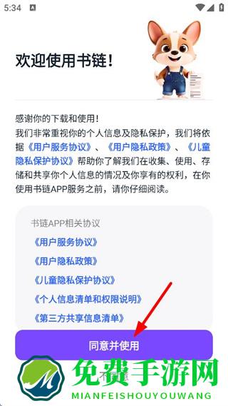 1、在欢迎使用书链页面,点击同意并使用,然后进入登录选择页面。