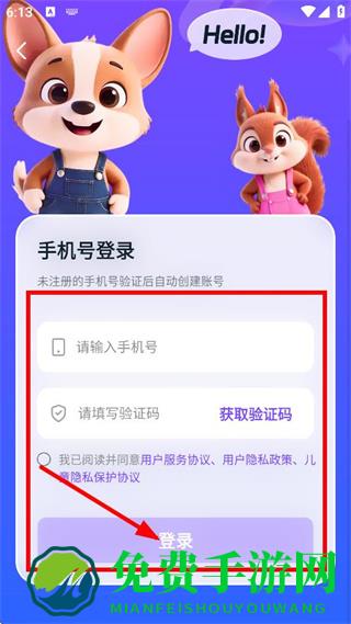 3、在手机号登录页面,输入手机号、验证码,点击登录,完成账号登录。
