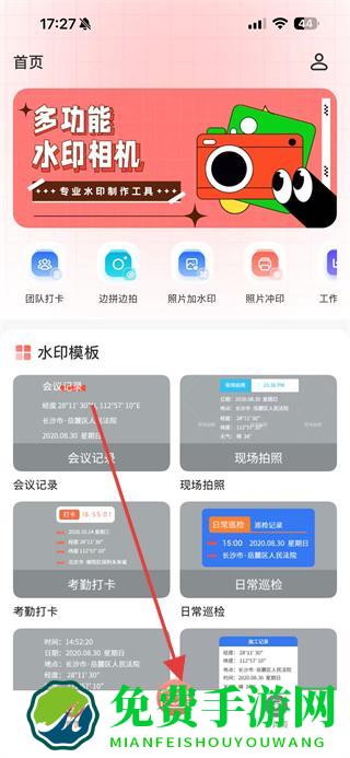 水印模板-支持添加多种水印模板,会议记录、现场拍照、考勤打卡、日常巡检、经纬度水印、施工记录、地点、时间、美食、天气的水印统统都有。