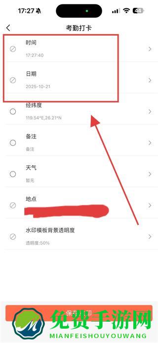 3、拍摄完成后,进入考勤打卡编辑界面,找到时间和日期选项。