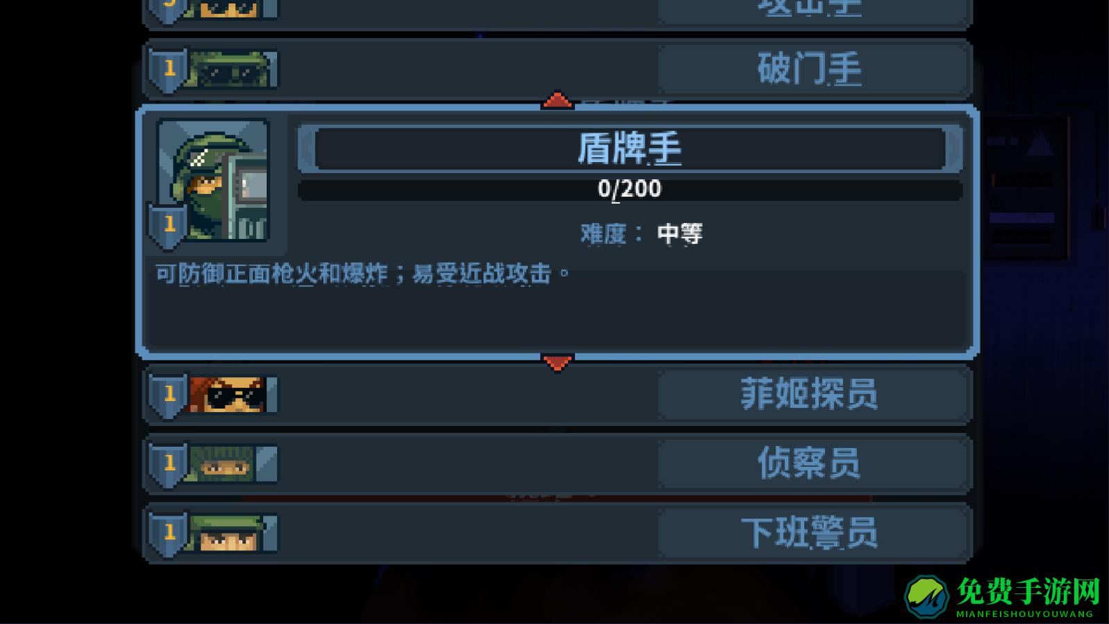 盾牌手:可以防御正面枪火和爆炸,比较容易受到近距离的攻击