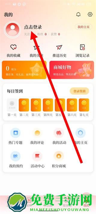 2、在个人页面中,点击点击登录区域,进入登录页面。