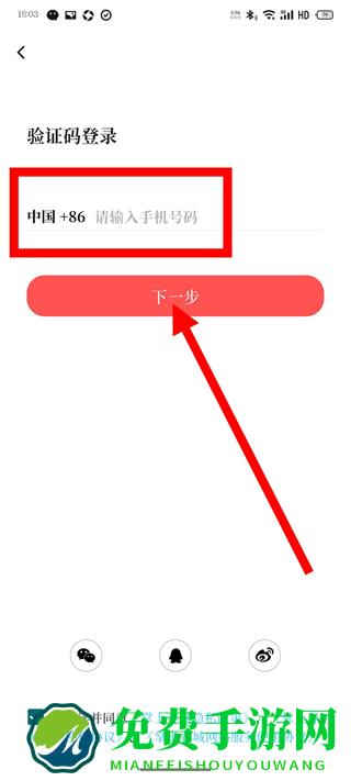 3、进入验证码登录页面,输入手机号码,点击下一步。