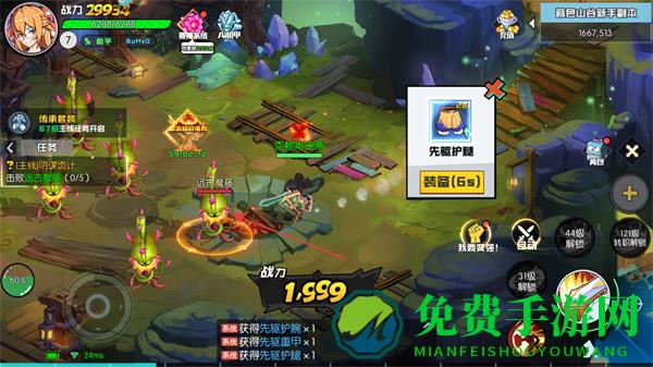 2、战斗中击败怪物,可获得装备如先驱护腿、先驱护肩和道具奖励,提升战力。