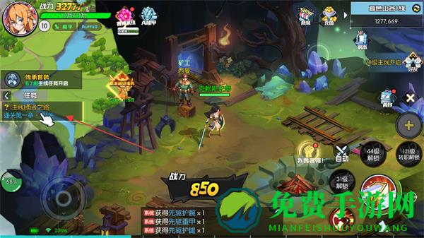 1、跟随任务指引,在场景中自动寻路,完成主线任务,如击败山谷领主、与NPC对话等。