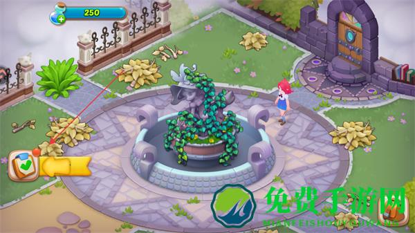 3、靠近被藤蔓覆盖的建筑如喷泉雕塑,清理周围的障碍物,解锁建筑的更多细节。