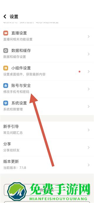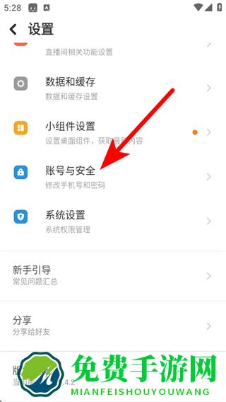 3.进入设置界面后,点击账号与安全选项。
