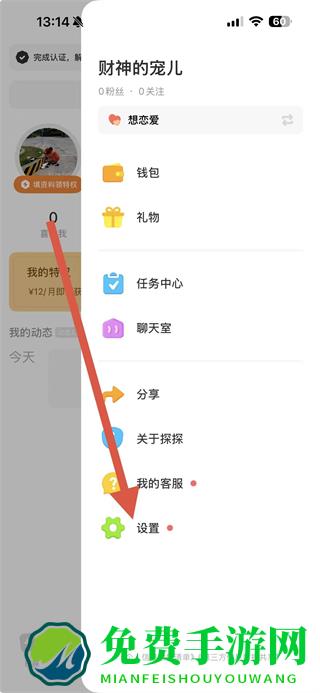 2.在弹出的菜单中,点击设置选项。