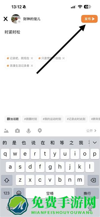 4、内容编辑完成后,点击右上角的发布按钮,即可成功发布动态。