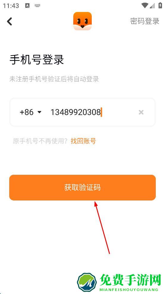 2、在登录界面,选择手机号登录,输入要使用的手机号码,然后点击“获取验证码”按钮,准备接收验证码进行登录验证。