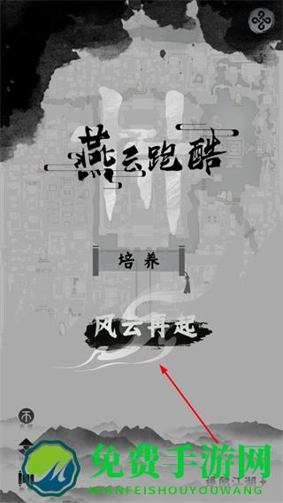 1、进入游戏主界面,点击风云再起按钮,开始江湖跑酷之旅。
