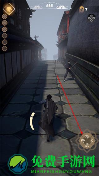3、遇到敌人时,点击释放奇术按钮,施展技能击败敌人,继续前进。