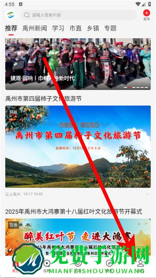 1、打开云上禹州,点击底部导航栏最右侧的我的,进入个人中心页面。