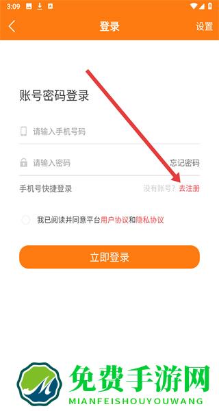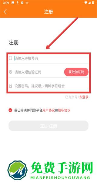 4、注册页面填写手机号码,获取并输入短信验证码,设置密码,勾选协议后完成账号注册。