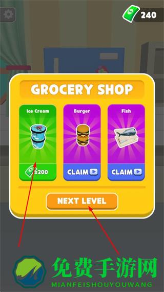 4、在关卡选择界面,可选择花费金币解锁新的物品类别,点击NEXT LEVEL进入下一关。