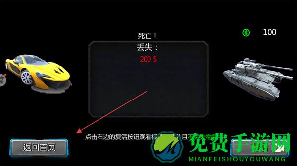 4、死亡后可选择返回首页或观看视频复活,复活后继续在城市中逃亡与战斗。