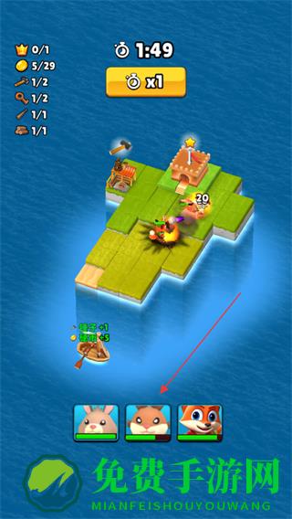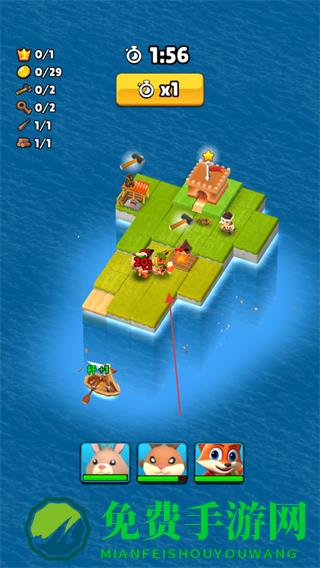 1、在岛屿上指挥动物如狐狸行动,清理区域,收集资源。