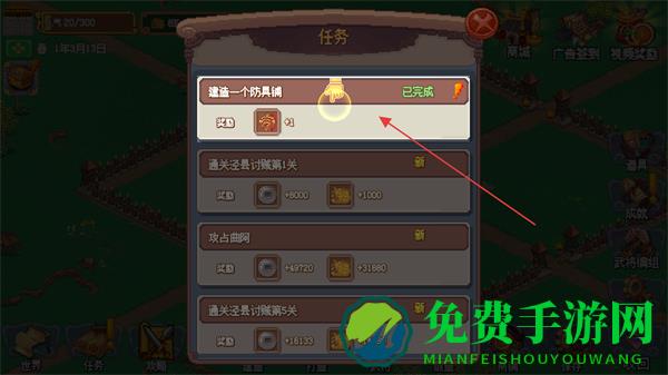 2、完成主线任务如建造一个防具铺,获取任务奖励,提升游戏进度。