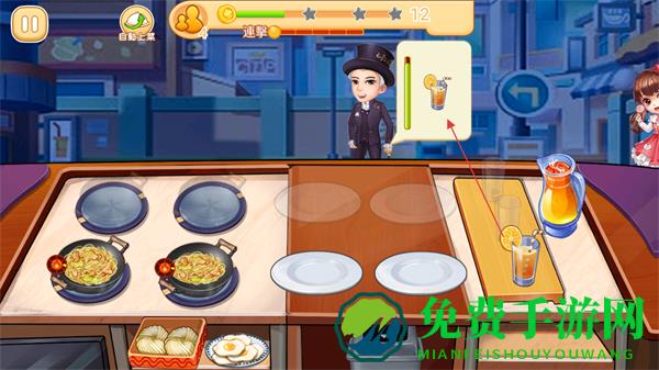 4、同时处理多位顾客的不同订单,高效烹饪和配送,获取金币和星级评价,提升夜市小吃店的经营等级。