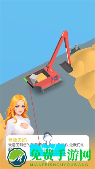 1、点击加速按钮,让挖掘机开始工作,挖掘沙土。